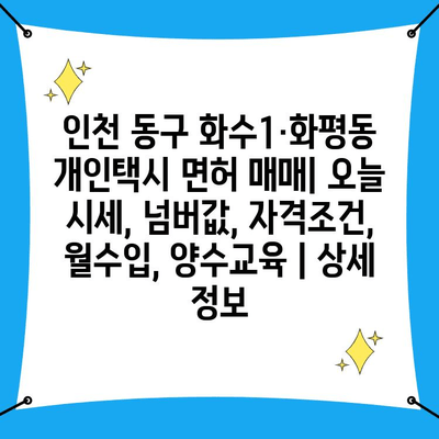 ✅ 인천 동구 화수1·화평동 개인택시 면허 매매 시세, 넘버값, 자격조건, 월수입, 양수교육 등 상세 정보를 한번에 확인해 보세요!