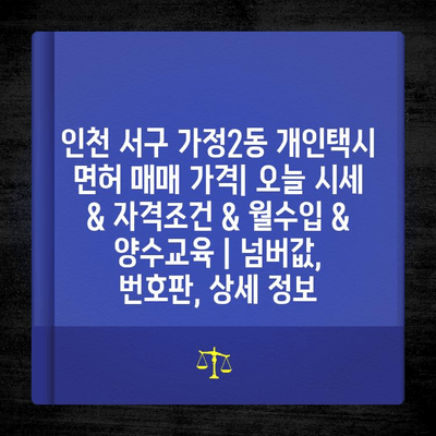 ✅ 인천 서구 가정2동 개인택시 면허 매매 시세, 자격, 수입, 양수 교육 등 궁금한 모든 정보를 한눈에 확인하세요!