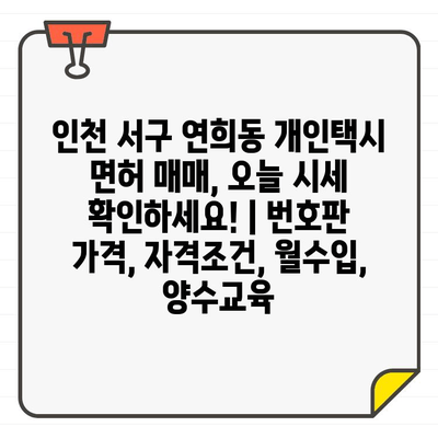 ✅ 인천 연희동 개인택시 면허 매매, 시세가 궁금하다면? 지금 바로 확인하세요!