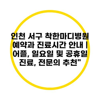인천 서구 착한마디병원 예약과 진료시간 공지 | 어플, 일요일 및 공휴일 진료, 전연락 추천에 대해 자주 묻는 질문 TOP 5