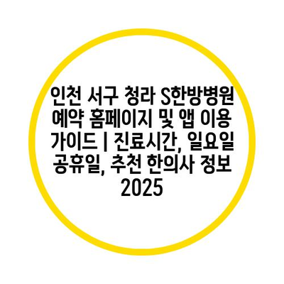 ✅ 청라 S한방병원의 예약 방법과 진료 정보를 상세히 알아보세요.
