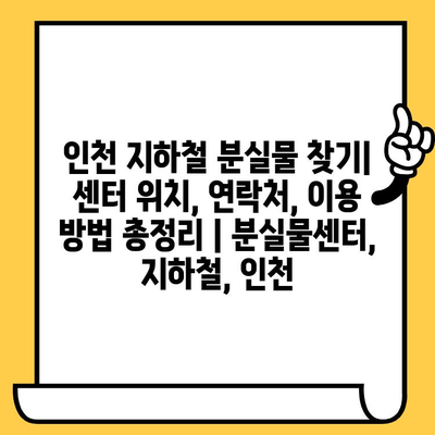 ✅ 인천 지하철 분실물센터 위치와 연락처를 한눈에 확인하고, 분실물 찾는 방법까지 알아보세요!