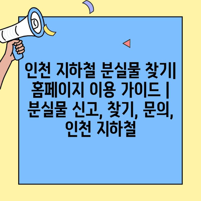 “- 인천 지하철 분실물, 홈페이지에서 바로 확인하세요! 잃어버린 물건을 찾는 가장 빠른 방법입니다.”