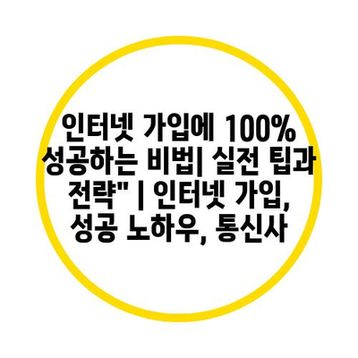 인터넷 가입에 100% 성공하는 비법은 실전 팁과 전략을 통해 얻을 수 있습니다.