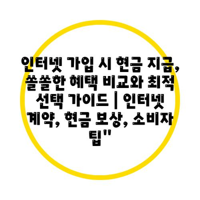 인터넷 가입 시 현금 지급, 쏠쏠한 혜택 비교와 최적 선택 설명서 | 인터넷 계약, 현금 보상, 소비자 팁