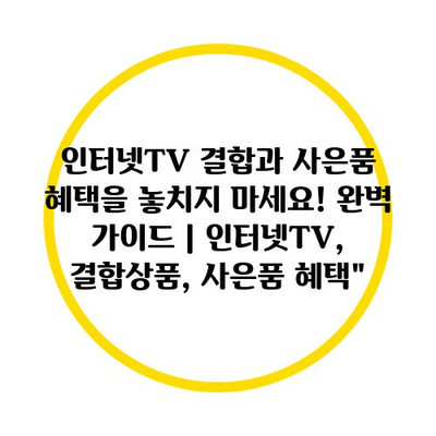 인터넷TV 결합과 사은품 혜택을 놓치지 마세요! 완벽 가이드 | 인터넷TV, 결합상품, 사은품 혜택”