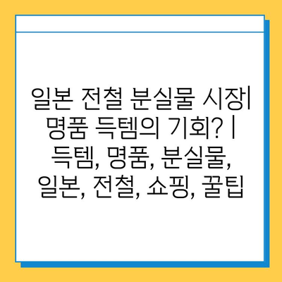 본 블로그에서는 일본 전철 분실물 시장의 현실과 명품 득템 꿀팁, 그리고 주의 사항에 대해 자세히 알려알려드리겠습니다. 일본 여행 계획 중이시라면, 놓치지 말고 알아보세요!