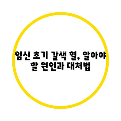 💡 임신 초기 갈색 혈의 원인과 대처법을 자세히 알아보세요. 💡