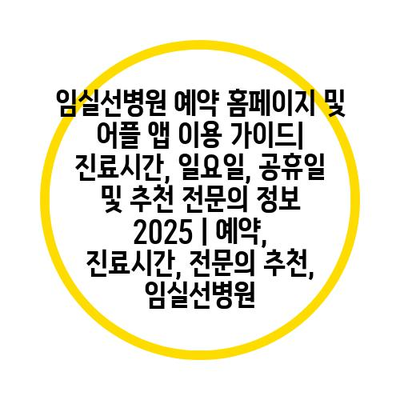 임실선병원 예약 홈페이지 및 어플 앱 이용 설명서| 진료시간, 일요일, 공휴일 및 추천 전연락 정보 2025 | 예약, 진료시간, 전연락 추천, 임실선병원 에 대해 자주 묻는 질문 TOP 5