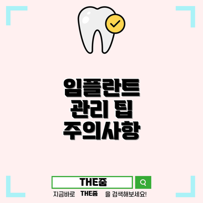 임플란트 수술 후에는 치아와 잇몸의 건강을 유지하기 위해 세심한 관리가 필요합니다. 위에서 언급한 주의사항을 잘 지키고, 정기적으로 치과를 방문하여 검진을 받는 것이 중요합니다. 이제 여러분의 미소를 더욱 빛나게 할 준비가 되었나요? 임플란트 관리에 최선을 다하여 건강한 치아를 유지하시길 바랍니다!