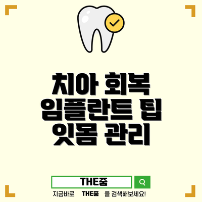 임플란트 치료는 많은 사람들이 선택하는 효율적인 치아 복구 방법입니다. 치료 후 회복 과정을 제대로 관리하지 않으면 결과에 영향을 줄 수 있습니다. 이러한 점에서 임플란트 치료에 대한 이해는 필수적이며, 특히 회복기간 동안 주의해야 할 사항에 대해 자세히 알아보겠습니다. 임플란트 #치아회복 #잇몸치료