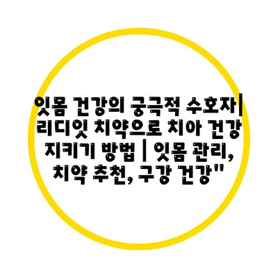 ✅ 리디잇 치약으로 잇몸 건강 지키는 비결을 알아보세요!