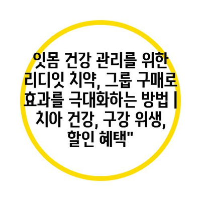 잇몸 건강 관리를 위한 리디잇 치약, 그룹 구매로 효과를 극대화하는 방법 | 치아 건강, 구강 위생, 할인 혜택