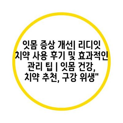 잇몸 증상 개선| 리디잇 치약 사용 후기 및 효과적인 관리 팁 | 잇몸 건강, 치약 추천, 구강 위생에 대해 자주 묻는 질문 TOP 5
