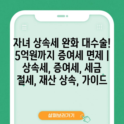 ✅ 자녀에게 재산을 상속할 때, 얼마나 세금을 내야 하는지 궁금하신가요? 5억원까지 증여세 면제되는 자녀 상속세 완화 정책을 자세히 알아보고, 나에게 맞는 최적의 상속 전략을 세워보세요!