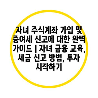 자녀에게 주식 계좌에 투자하는 것은 증여세 신고를 필요로 합니다. 이를 통해 법적인 기준을 이해하고 준수할 수 있습니다.