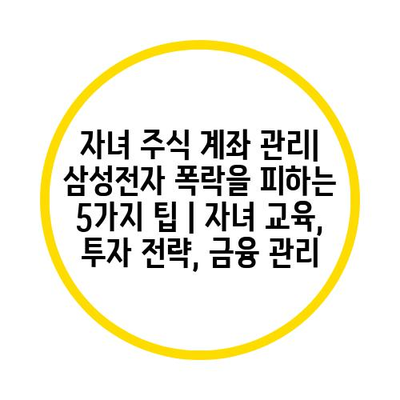 자녀 주식 계좌 관리| 삼성전자 폭락을 피하는 5가지 팁 | 자녀 교육, 투자 전략, 금융 관리