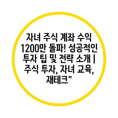 자녀 주식 계좌 수익 1200만 돌파! 성공적인 투자 팁 및 전략 소개 | 주식 투자, 자녀 교육, 재테크에 대해 자주 묻는 질문 TOP 5