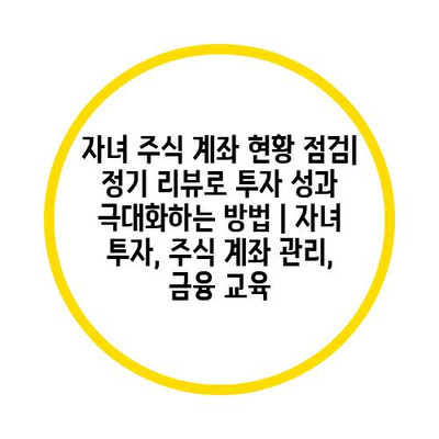 자녀 주식 계좌 현황 점검| 정기 리뷰로 투자 성과 극대화하는 방법 | 자녀 투자, 주식 계좌 관리, 금융 교육 에 대해 자주 묻는 질문 TOP 5