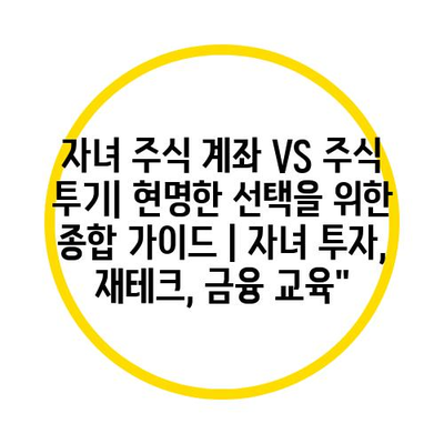 자녀 주식 계좌 VS 주식 투기| 현명한 선택을 위한 종합 가이드 | 자녀 투자, 재테크, 금융 교육”