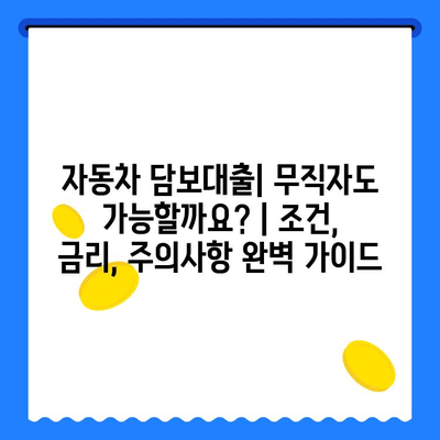 자동차 담보대출| 무직자도 가능할까요? | 조건, 금리, 주의사항 완벽 가이드