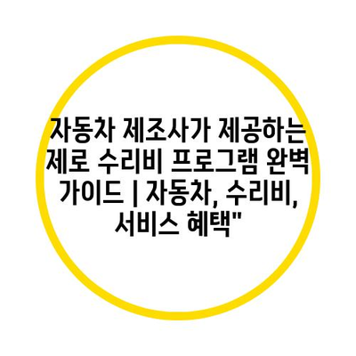 제로 수리비 프로그램은 자동차 소유자들에게 큰 부담이 되는 수리비를 줄이는 데 도움을 줍니다.