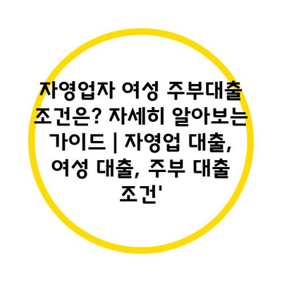 ✅ 자영업자 여성 주부대출의 조건을 상세히 알아보세요.