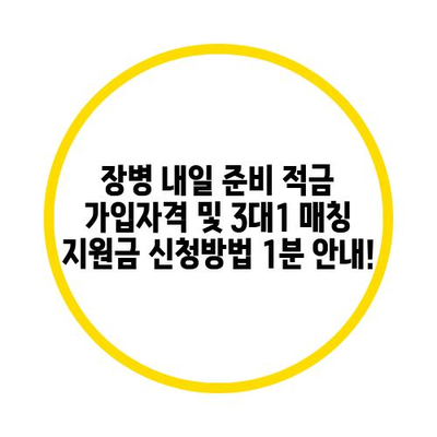 💡 장병 내일 준비 적금의 가입 조건과 매칭 지원금 신청 방법을 바로 알아보세요. 💡
