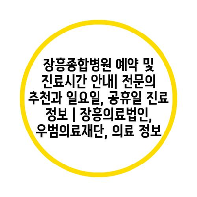 장흥종합병원 예약 및 진료시간 안내| 전문의 추천과 일요일, 공휴일 진료 정보 | 장흥의료법인, 우범의료재단, 의료 정보