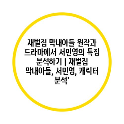 서민영은 재벌집 막내아들에서 중요한 역할을 맡고 있는 캐릭터로, 원작 소설과 드라마에서 표현되는 모습에 차이가 있습니다. 그녀는 두 가지 매체에서 각기 다른 방식으로 독자와 시청자의 관심을 끌고 있습니다.