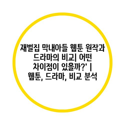 재벌집 막내아들은 웹툰으로 시작해 드라마로 구현되면서 많은 사랑을 받았습니다. 원작 웹툰과 드라마는 그 자체로 매력적이지만, 두 매체 간의 차이점은 흥미로운 논의거리를 제공합니다. 원작에서의 스토리는 빠르게 전개되면서 독자에게 큰 몰입감을 주지만, 드라마에서는 감정선과 인물의 복잡한 관계를 더욱 깊이 있게 그려내고 있습니다.