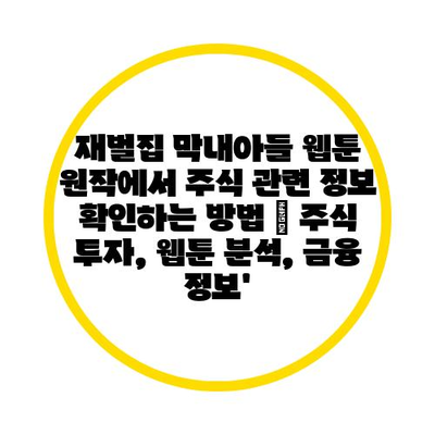재벌집 막내아들 웹툰 원작에서 주식 관련 정보 확인하는 방법은 주식 투자에 큰 도움이 될 수 있습니다.