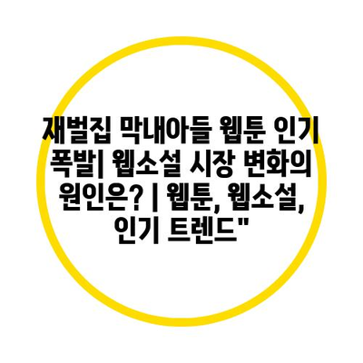 최근 웹소설과 웹툰 시장이 큰 변화를 겪고 있습니다. 특히 ‘재벌집 막내아들’과 같은 인기 웹툰이 재조명받으면서, 웹소설 시장에도 새로운 트렌드가 나타나고 있습니다. 이러한 변화의 배경에는 여러 가지 요인이 작용하고 있는데, 소비자의 선호도 변화, 새로운 플랫폼의 등장, 그리고 글로벌 시장의 성장 등이 주요한 요소로 작용하고 있습니다.