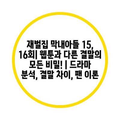 최근 인기리에 방영된 드라마 ‘재벌집 막내아들’은 원작 웹툰과 다른 결말로 많은 논란을 불러일으켰습니다. 이 글에서는 드라마의 15, 16회를 중심으로 웹툰과의 결말 차이를 분석하고, 이와 관련한 팬들의 이론에 대해 살펴보겠습니다. 드라마는 원작의 주요 요소를 일정 부분 유지하면서도, 이야기 전개와 결말에서 상이한 점들을 보여주었습니다. 이를 통해 각 버전의 메시지와 주제가 어떻게 달라지는지를 이해할 수 있을 것입니다.