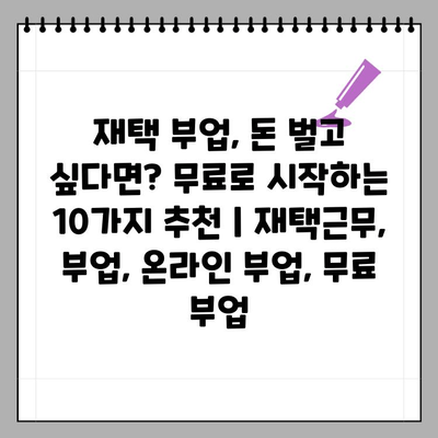 재택 부업, 돈 벌고 싶다면? 무료로 시작하는 10가지 추천 | 재택근무, 부업, 온라인 부업, 무료 부업