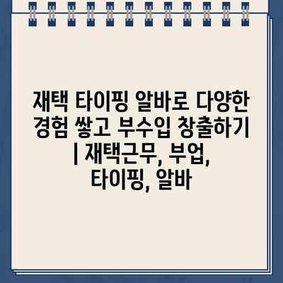 재택 타이핑 알바로 다양한 경험 쌓고 부수입 창출하기 | 재택근무, 부업, 타이핑, 알바