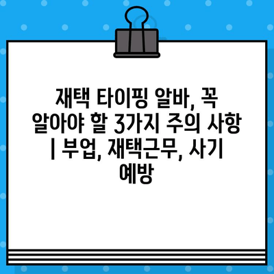 “재택 타이핑 알바, 돈 벌기 전에 꼭 확인하세요!는 쉬운 일처럼 보이지만, 꼼꼼한 확인 없이는 낭패를 볼 수 있습니다.”