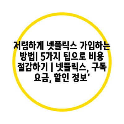 저렴하게 넷플릭스 가입하는 방법| 5가지 팁으로 비용 절감하기 | 넷플릭스, 구독 요금, 할인 정보