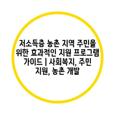 저소득층 농촌 지역 주민을 위한 효과적인 지원 프로그램 가이드 | 사회복지, 주민 지원, 농촌 개발