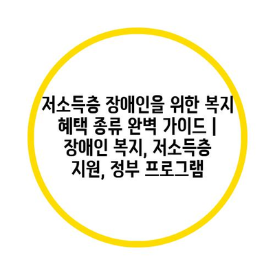 저소득층 장애인을 위한 복지 혜택 종류 완벽 가이드 | 장애인 복지, 저소득층 지원, 정부 프로그램