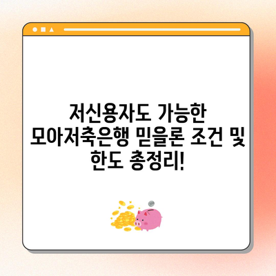 Meta Description: 저신용자도 가능한 모아저축은행 믿을론 조건 및 한도에 대해 자세히 알아보세요. 대출 한도와 후기까지 종합적으로 정리했습니다.