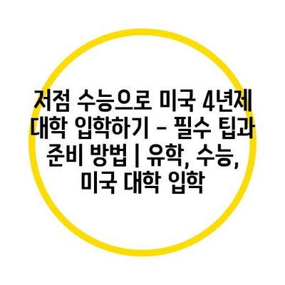 저점 수능은 한국에서 대학교에 진학하기 위해 필수인 시험으로, 많은 학생들이 이를 통해 미국 4년제 대학에 입학할 수 있게 됩니다. 미국 대학의 입학 과정은 다소 복잡하고 다양한 요소를 고려해야 하지만, 좋은 전략을 세우면 성공적인 진학이 할 수 있습니다.