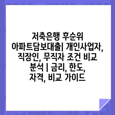 저축은행 후순위 아파트담보대출 | 개인사업자, 직장인, 무직자 조건 비교 분석 | 금리, 한도, 자격, 비교 설명서
