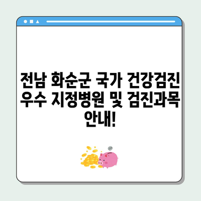 전남 화순군의 국가 건강검진 병원 리스트 및 우수 지정병원에 대한 상세 안내와 검진과목에 대해 알아보세요.