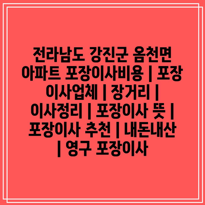전라남도 강진군 옴천면 아파트 포장이사비용 | 포장 이사업체 | 장거리 | 이사정리 | 포장이사 뜻 | 포장이사 추천 | 내돈내산 | 영구 포장이사 에 대해 자주 묻는 질문 TOP 5