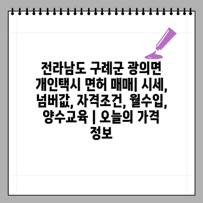 전라남도 구례군 광의면 개인택시 면허 매매| 시세, 넘버값, 자격조건, 월수입, 양수교육 | 오늘의 가격 정보 에 대해 자주 묻는 질문 TOP 5