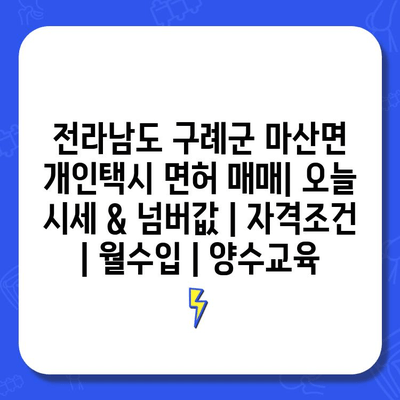 전라남도 구례군 마산면 개인택시 면허 매매 | 오늘 시세 & 넘버값 | 자격조건 | 월수입 | 양수교육