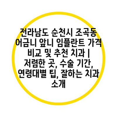 전라남도 순천시 조곡동에서 어금니와 앞니 임플란트를 고려하시는 분들을 위해 가격 비교 및 추천 치과에 대해 소개합니다.