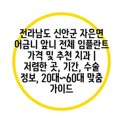 전라남도 신안군 자은면 어금니 앞니 전체 임플란트 가격 및 추천 치과 | 저렴한 곳, 기간, 수술 정보, 20대~60대 맞춤 가이드