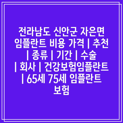 전라남도 신안군 자은면 임플란트 비용 가격 | 추천 | 종류 | 날짜 | 수술 | 회사 | 건강보험임플란트 | 65세 75세 임플란트 보험 에 대해 자주 묻는 질문 TOP 5